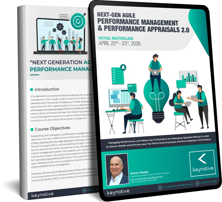 A fundamental component of reward management and HR management is an effective system for performance management (PM) usually underpinned by the three main pillars of OCD (which are Objectives, Competencies, Development). This course will assist you in either reviewing your current approaches for PM or implementing new approaches for PM or getting agility from your approaches for setting goals and objectives by learning about the advantages and disadvantages of KPIs and OKRs and MSCs. In an increasingly competitive environment, when you want to attract and retain the best individual employees and high-performers, having an effective and fair performance management system is crucial to underpin best-practice HR policies and drive employee performance and motivation and ultimately build employee engagement.